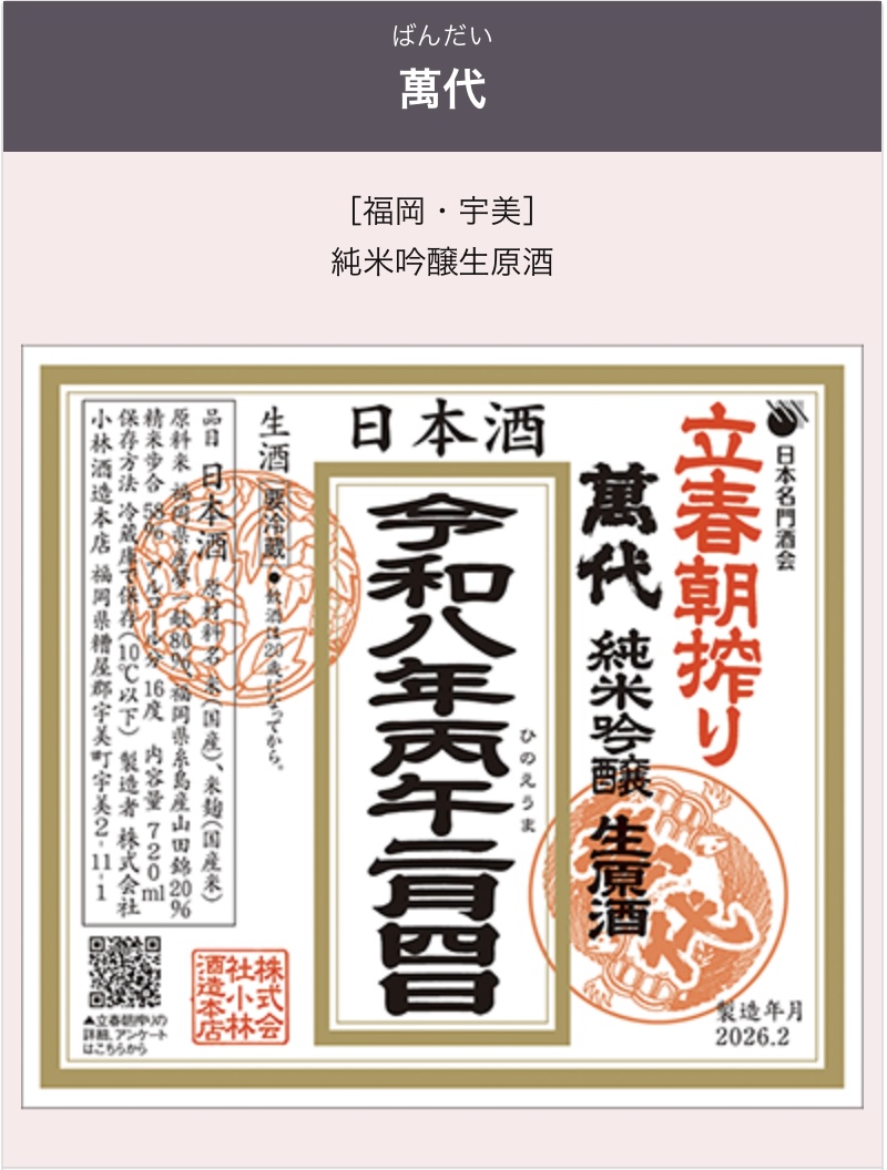 萬代(福岡) 立春朝搾り2026祈願酒720㎖