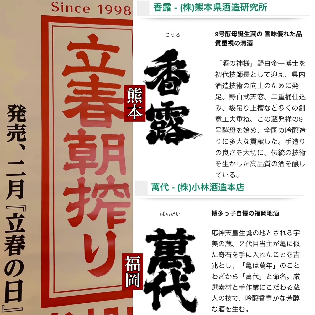 香露(熊本)福岡(萬代)飲み比べ 立春大吉2026祈願酒720×2本
